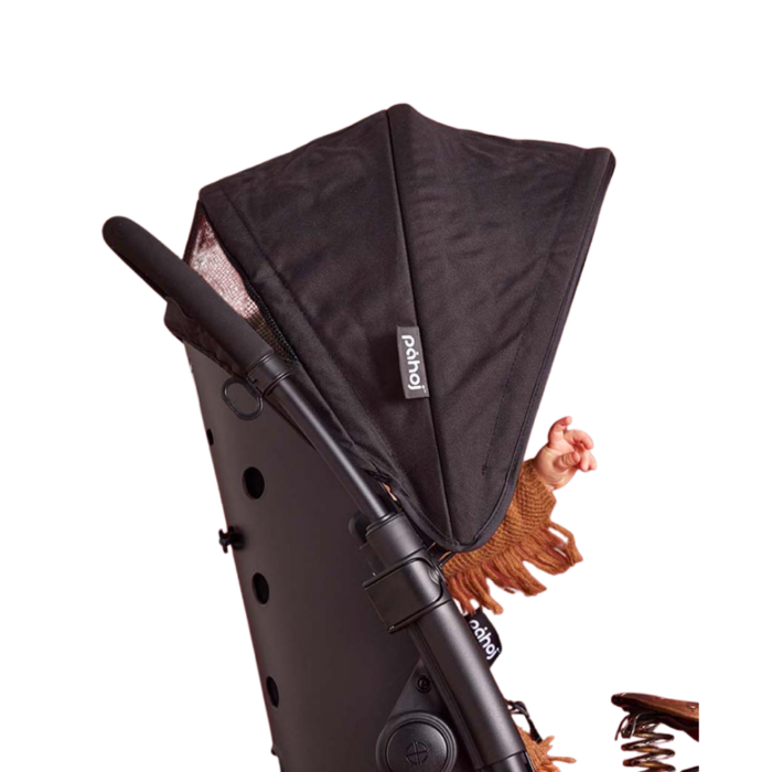The canopy protects your child from both sun and light rain. The perforated back ensures ventilation for the child and reduces wind resistance when cycling with an empty seat. It is easy to remove when needed.
