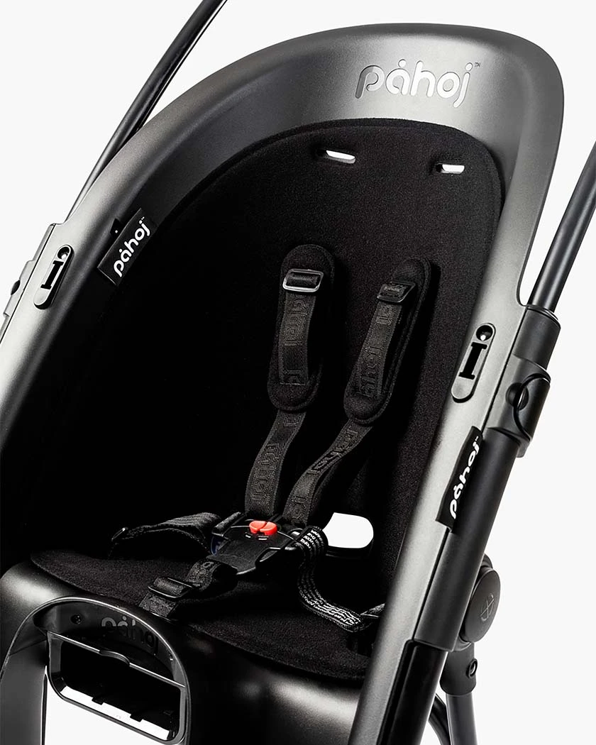 Påhoj is suitable for a child weighing up to 22 kg / 48.5 lbs and meets the EU safety standards for both bike seats (EN14344) and strollers (EN1888). These standards specify all sizes and measurements for a safety-approved product, and the license also includes rigorous testing at certified institutes in Germany and Sweden. These standards have been implemented from the beginning and have been tested and verified throughout the development process.